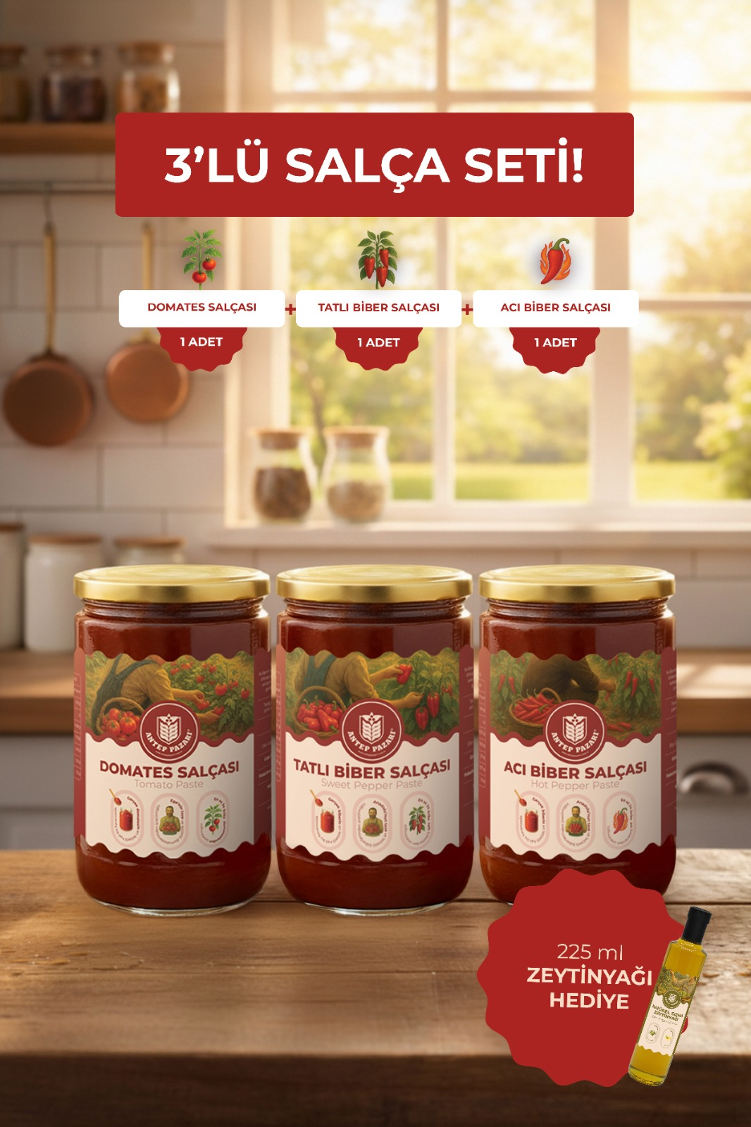 Antep Pazarı Salça Paketi + Nizip Zeytinyağı Hediyeli (250 ml)